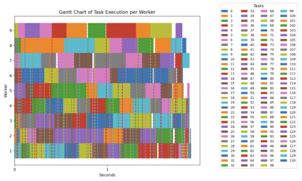 Below is a plot emulating the behaviour of the implemented task farming approach in SEAPODYM.