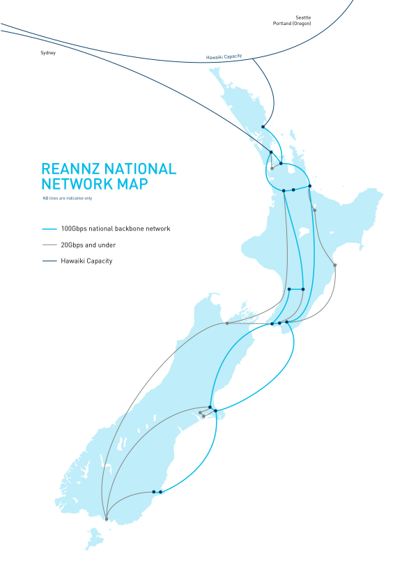 REANNZ operates a network that extends the length of the country - from Invercargill in the South Island, through major centres of the North Island to Auckland, and then to Mangawhai Heads in Northland where it connects to the Hawaiki Cable system. The international network includes sites in Sydney, Guam, Hawaii and Seattle where collaboration with NREN's and their communities around the world is facilitated.